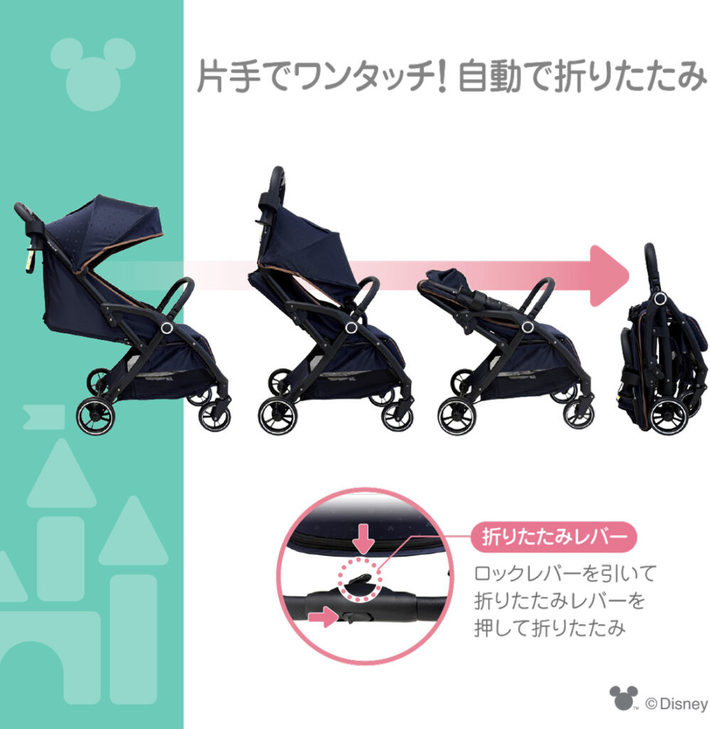 自動でたためるベビーカー/Mickey Mouse |